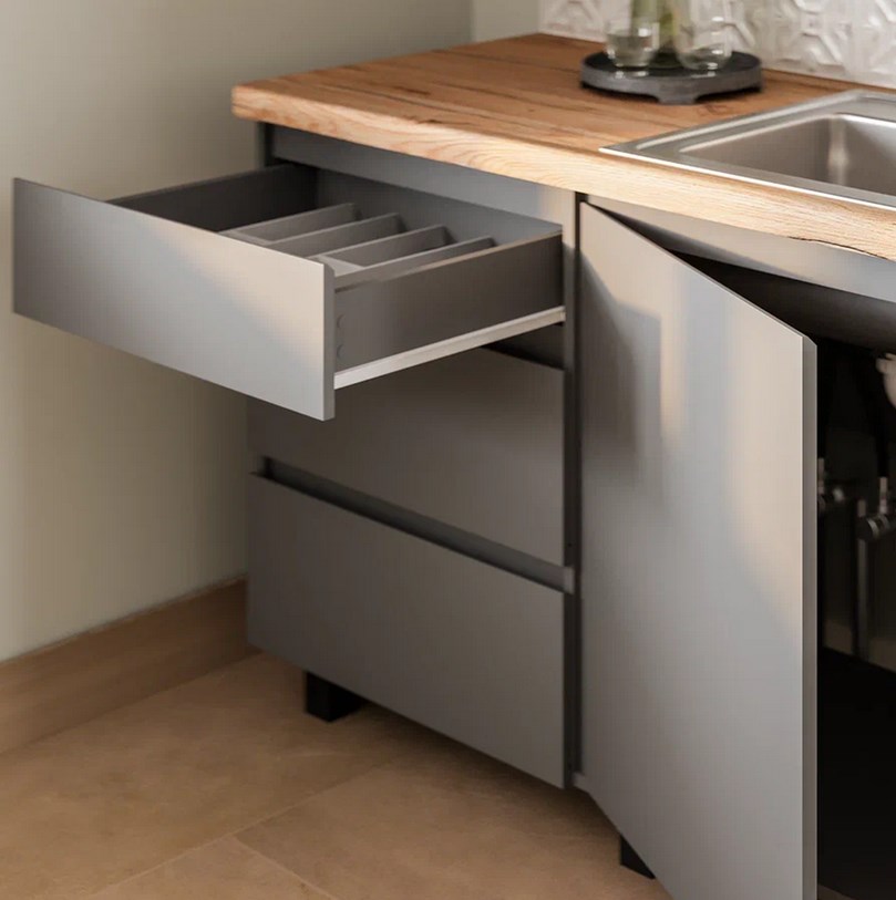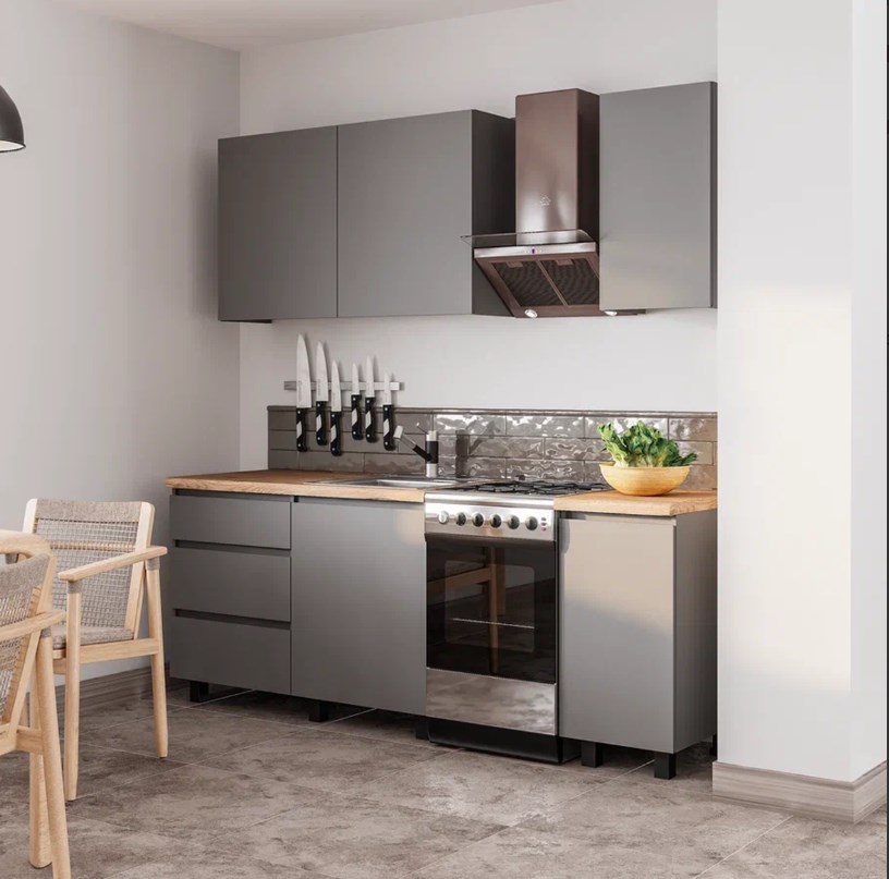 Дизайн кухни "Асти" - это вдохновение тренда на минимализм. Прямые четкие линии, матовые фасады без декора и гармоничное сочетание всех блококв делает этот комплект универсальным.