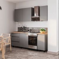 Кухонный гарнитур «Асти 1,6 м» ЛДСП комплект со столешницей 38мм, Дуб кера (1200+400). Высота верхних шкафов 720мм. Размеры: длина 1,6 м. Цвет корпуса и фасадов: Графит.