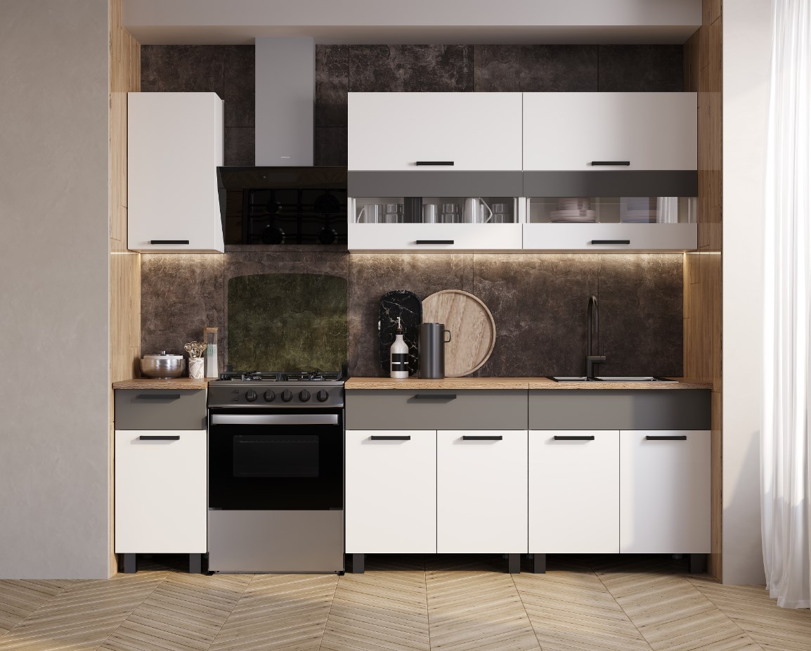 Новинка. Кухонный гарнитур «Монтана 2,0м» ЛДСП комплект со столешницей дуб Кера. Высота верхних шкафов 720мм. Размеры: длина 2,0 м. Цвет корпуса и фасадов: белый / белый,графит.
