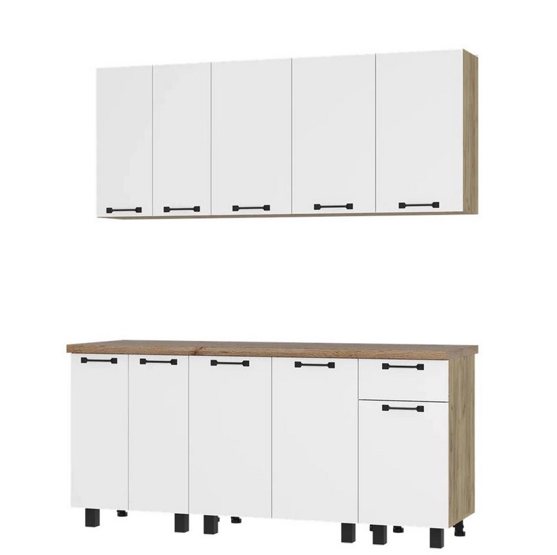 Кухонный гарнитур «Тина 1,8 м» ЛДСП комплект (с цельной столешницей 38 мм 1800 мм). Высота верхних шкафов 700мм. Размеры: длина 1,6 м (без учёта плиты). Цвет корпуса и фасадов: крафт / белый.