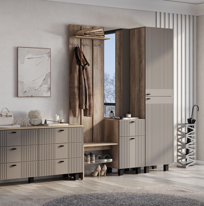 Практичная конструкция. Прихожая "Олива" ПР-04 — это компактная модель, которая идеально подходит для небольших пространств. Функционал прихожей позволит грамотно организовать пространство и легко поддерживать порядок.