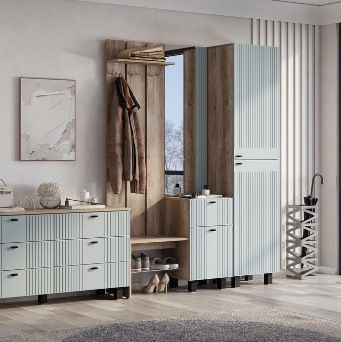 Модульная система. Размер без комода: (Ш*В*Г) 1502*2016*372. Цвет: муссон софт, шарли бриз, эвкалипт софт.
