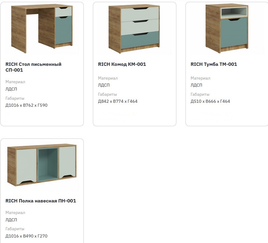 Цвет: корпус - Дуб Крафт золотой / фасады - «Пастельный зеленый + Сумеречный голубой» или «Миндаль + Глиняный серый».